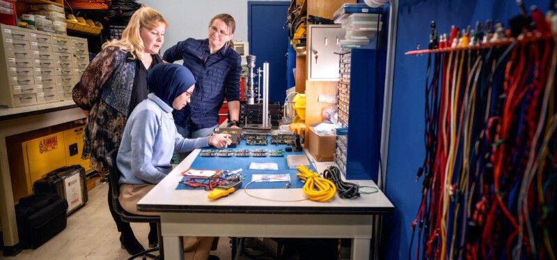 Spanswick, a Canada Research Chair in Geospace Dynamics and Space Plasma Physics, says the design of the instruments requires engineers such as Gadiwan, who’s involved in the software development, and Lukas Vollmerhaus, BSc (Eng)’17, an instrument design and maintenance engineer in the lab.